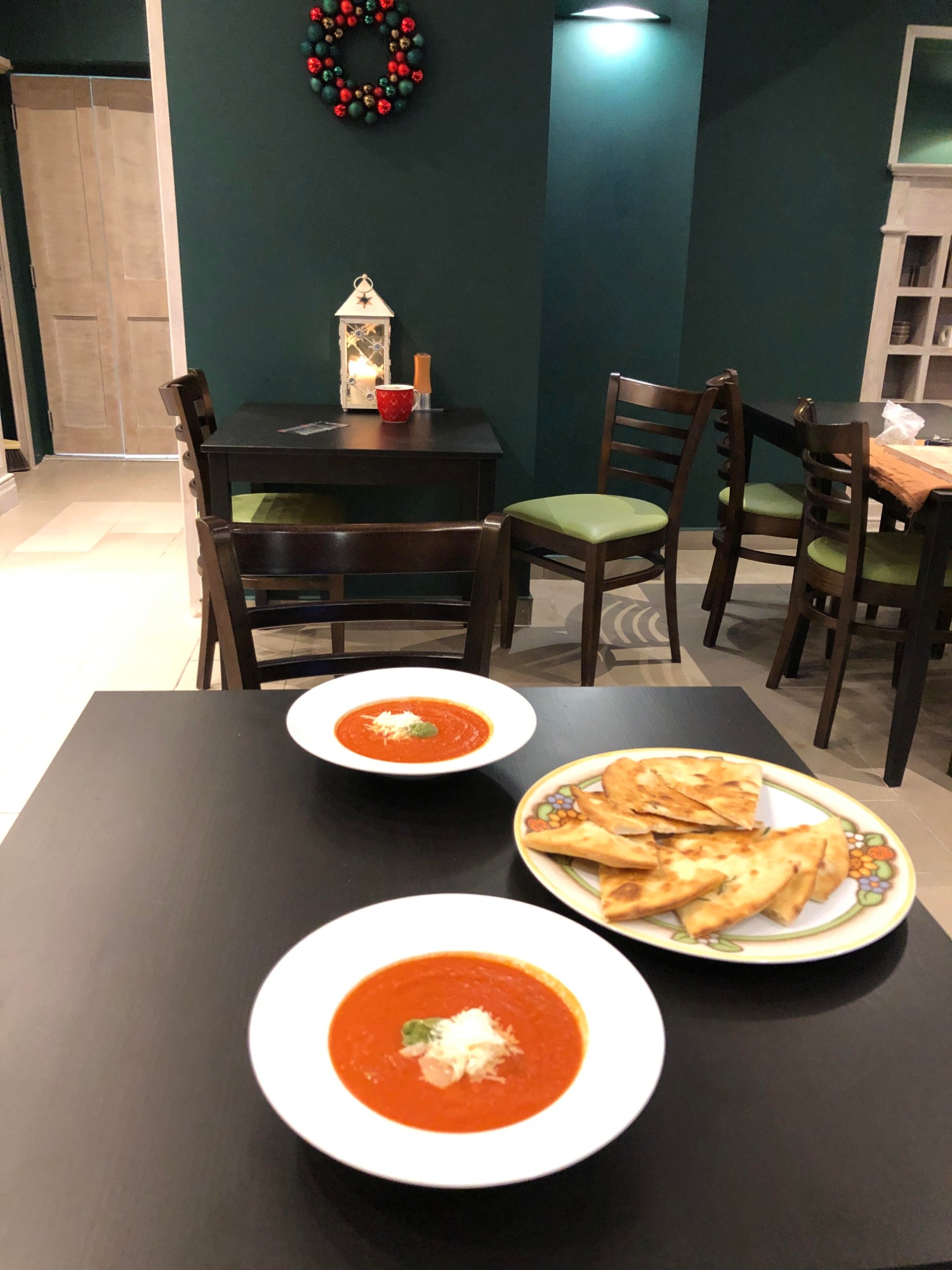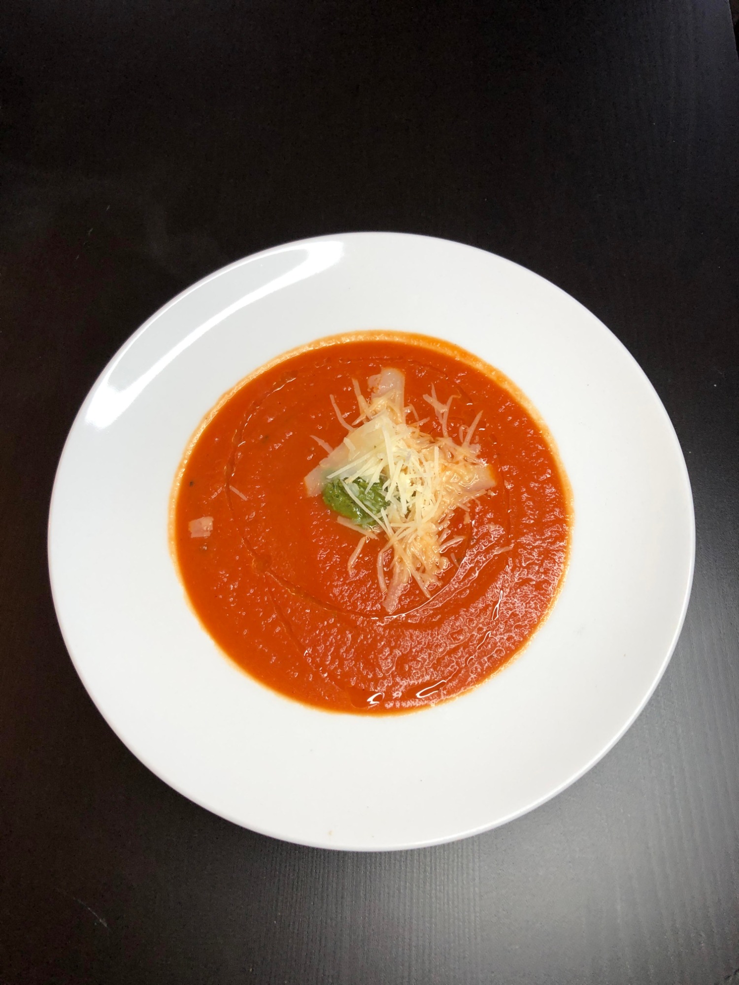 krem z pomidorów, pesto bazyliowe, grana padano